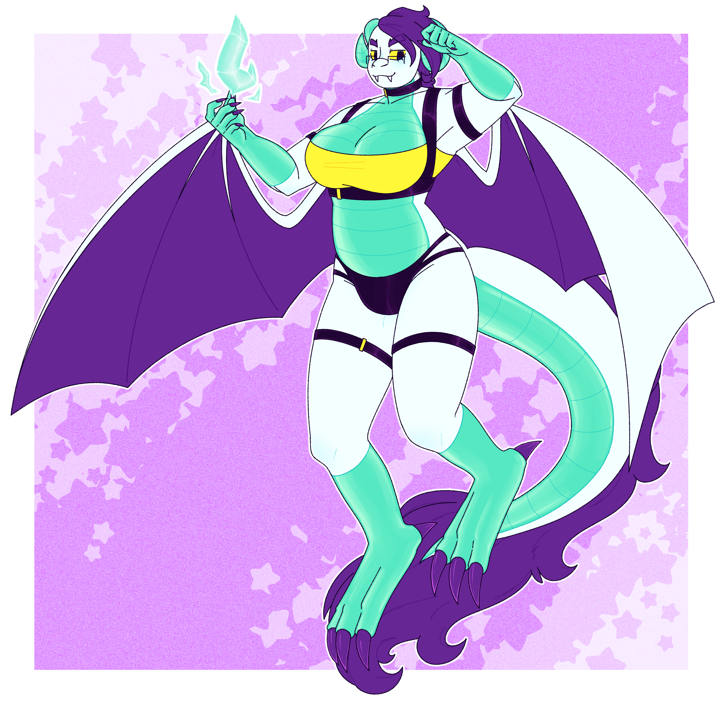Topaz is an ancient dragon who recently woke up from a long hibernation in his icy mountain cave. He hoards gems, crystals, and things he finds cute (mostly plushies).